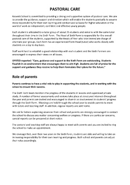 pastoral care of the students, supported by the Heads of Year who take immediate charge of