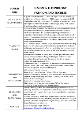 A grade 5 or above in GCSE DT or art. If you have not previously