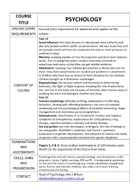 SKILLS, LINKS Psychology links well with science, especially biology, and also business, maths,
