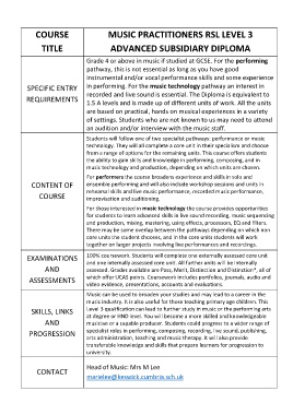 COURSE MUSIC PRACTITIONERS RSL LEVEL 3