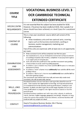 PROGRESSION Vocational business combines well with many other subjects, in particular